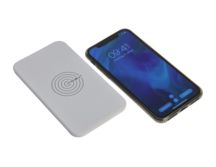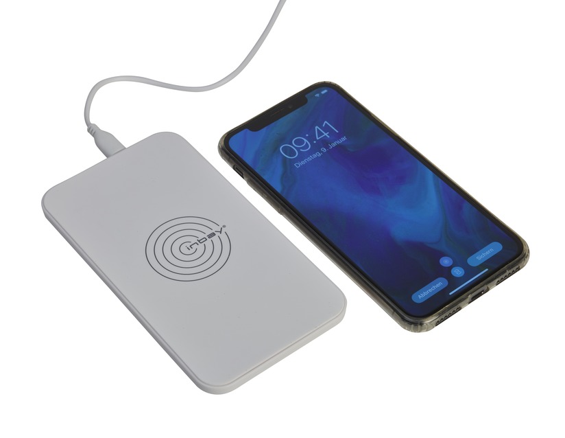Induktivna namizna polnilna postaja Qi z napajanjem USB v črni ali beli barvi za uporabo doma ali v pisarni.