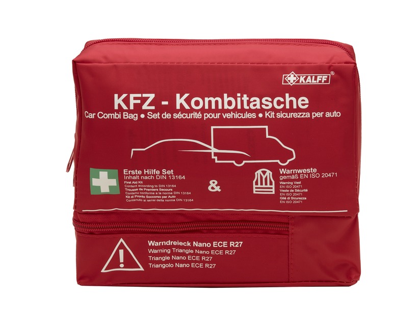 Razširjena komplet prve pomoči, dobavljen v mehki torbi in dodatno opremljen z nano opozorilnim trikotnikom in opozorilnim jopičem z visoko vidljivostjo. Zaradi svoje zelo majhnosti je ena najbolj prostorsko varčnih rešitev prve pomoči na trgu. Ima trakove VELCRO® na zadnji strani za varno pritrditev in 2-komorni sistem za ločeno shranjevanje opozorilnega trikotnika. Vključuje brošuro prve pomoči, ki vsebuje koristne in pomembne informacije.