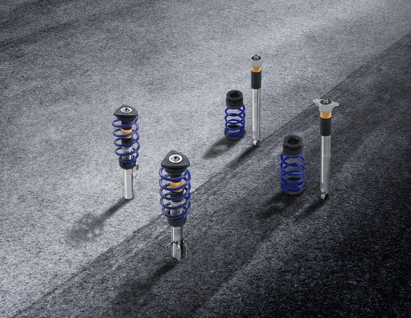 Komplet po višini nastavljive šasije iz nerjavečega jekla, vzmeti v modri barvi Ford Performance