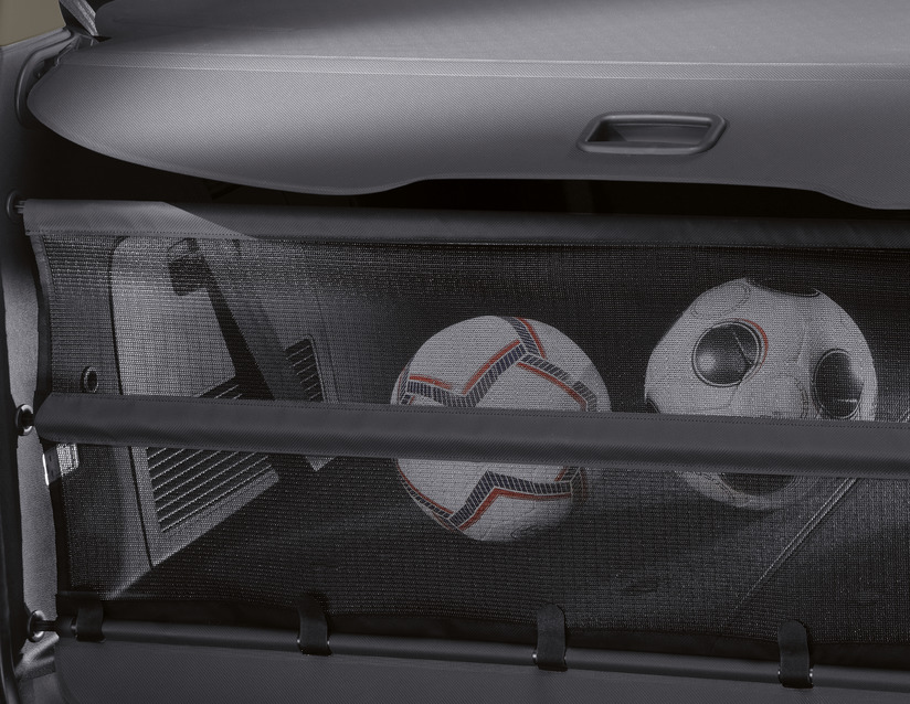 Ta uporaben pripomoček preprečuje, da bi manjši predmeti padli iz prtljažnika, ko ga odprete. Izbirni podaljšek zadrži večje tovore na mestu in pomaga pri preprostem rokovanju.