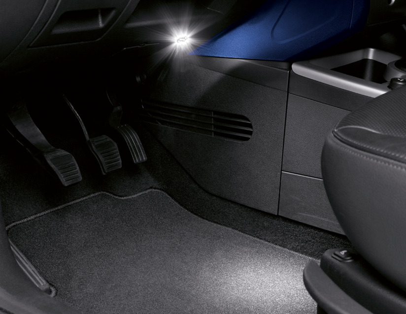 Kompakten s 5 LED, svetlo in elegantno modro svetlobo, služi kot osvetlitev prostora za noge ali prtljage