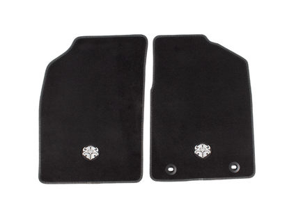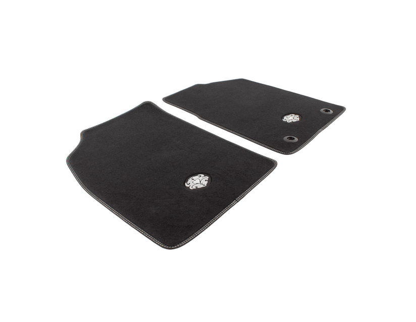Spredaj talne preproge iz velura, črne z belimi šivi