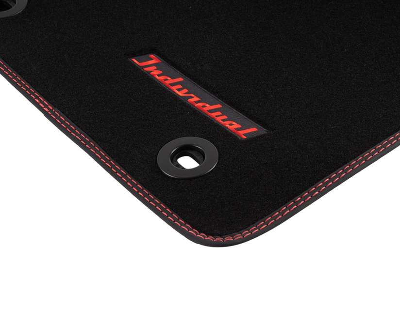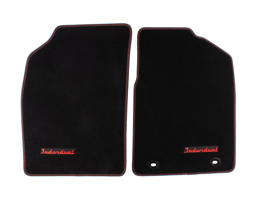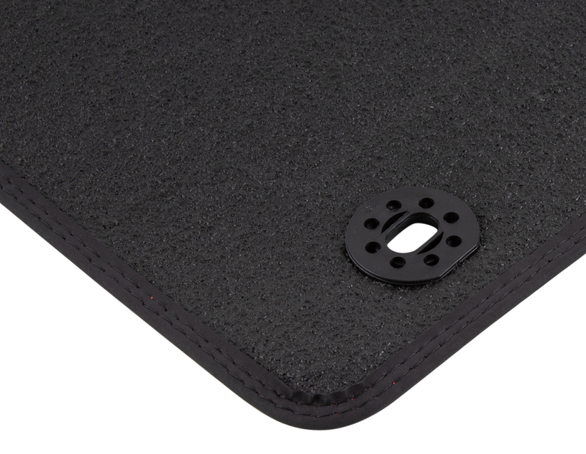 Spredaj velur talne preproge, črne barve z rdečimi šivi
