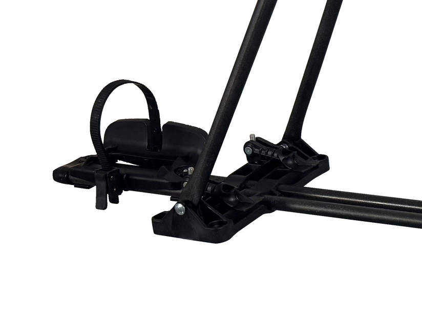 Strešni nosilec koles iz legiranega jekla za varen in zanesljiv prevoz široke palete koles, vključno z e-kolesi. Drži okrogle okvirje od 22 mm do 75 mm in ovalne okvirje do 75 x 100 mm. Kolo in nosilec se lahko zakleneta s ključem za dodatno varnost.