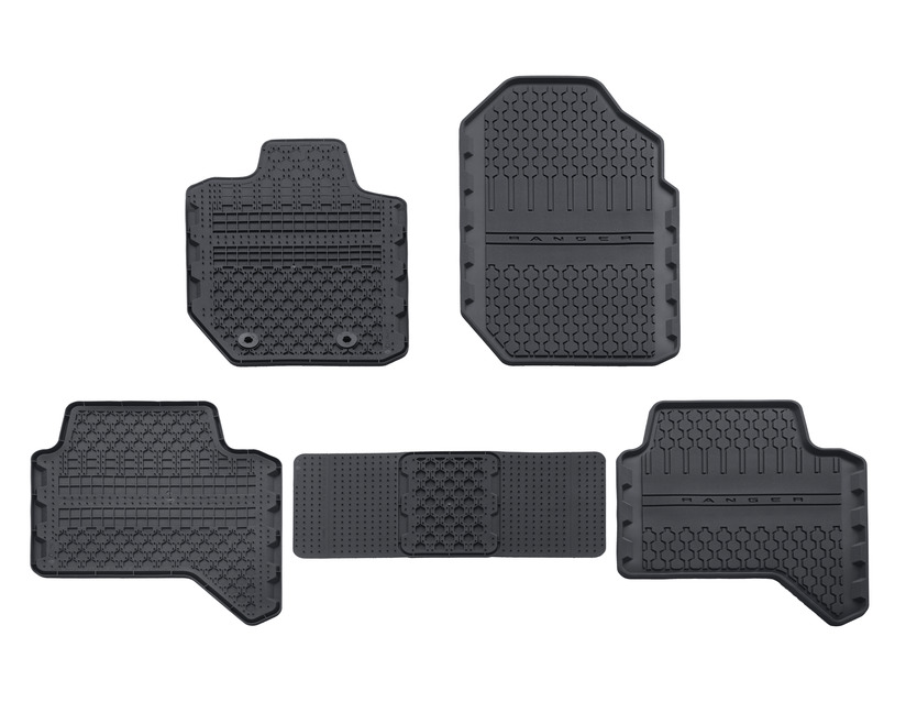 Ford gumijasti tepihi so izdelani po meri, da se natančno prilegajo vašemu vozilu. Voznikova preproga je pritrjena neposredno na tla, da prepreči stik s pedali. Narejeni so za intenzivno uporabo in ohranjajo tla vozila čista in suha. Na voljo sta sprednji in zadnji del.