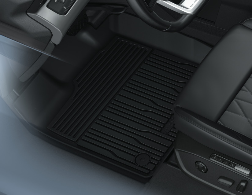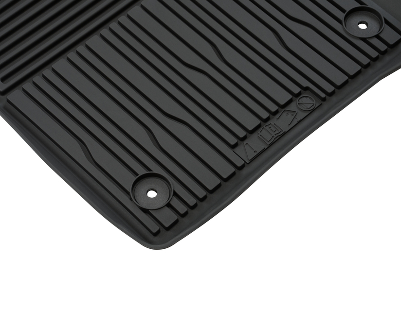 Oblikovan, komplet 2, s pritrdilnimi elementi na voznikovi strani. Dvignjeni robovi zagotavljajo še boljšo zaščito notranje preproge pred umazanijo in vlago.