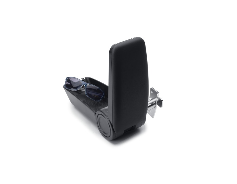 Zložljiv naslon za roke, ki se pritrdi na stran voznikovega sedeža. Ima vgrajen prostoren odlagalni prostor s protizdrsno podlago in oblazinjeno površino iz usnja, nastavljivo višino in kot, funkcijo mehkega odpiranja/zapiranja, drsni vrh in režo USB v naslonjalu za roke za polnjenje (samo oskrba z energijo). Prostornina približno 1 liter, barva karoserije naslona za roke v črni barvi. Dobavljeno s kovinskim adapterjem za vgradnjo
