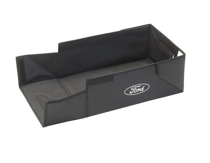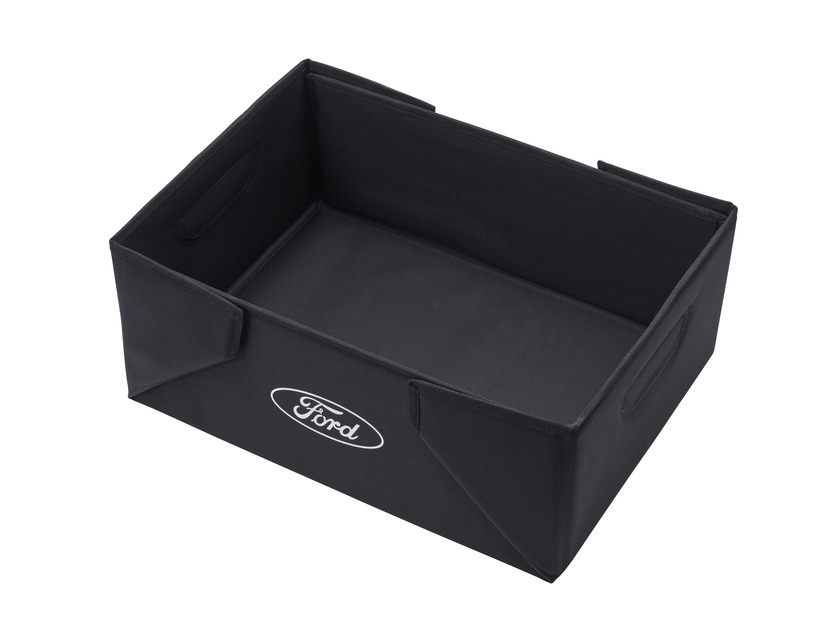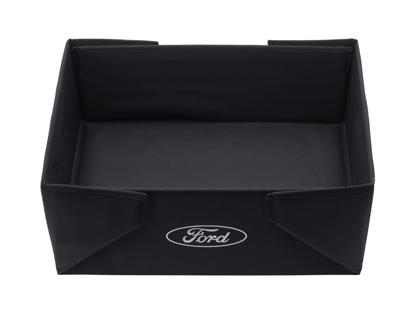 Zložljiva transportna škatla črne barve z belim logotipom Ford na obeh straneh